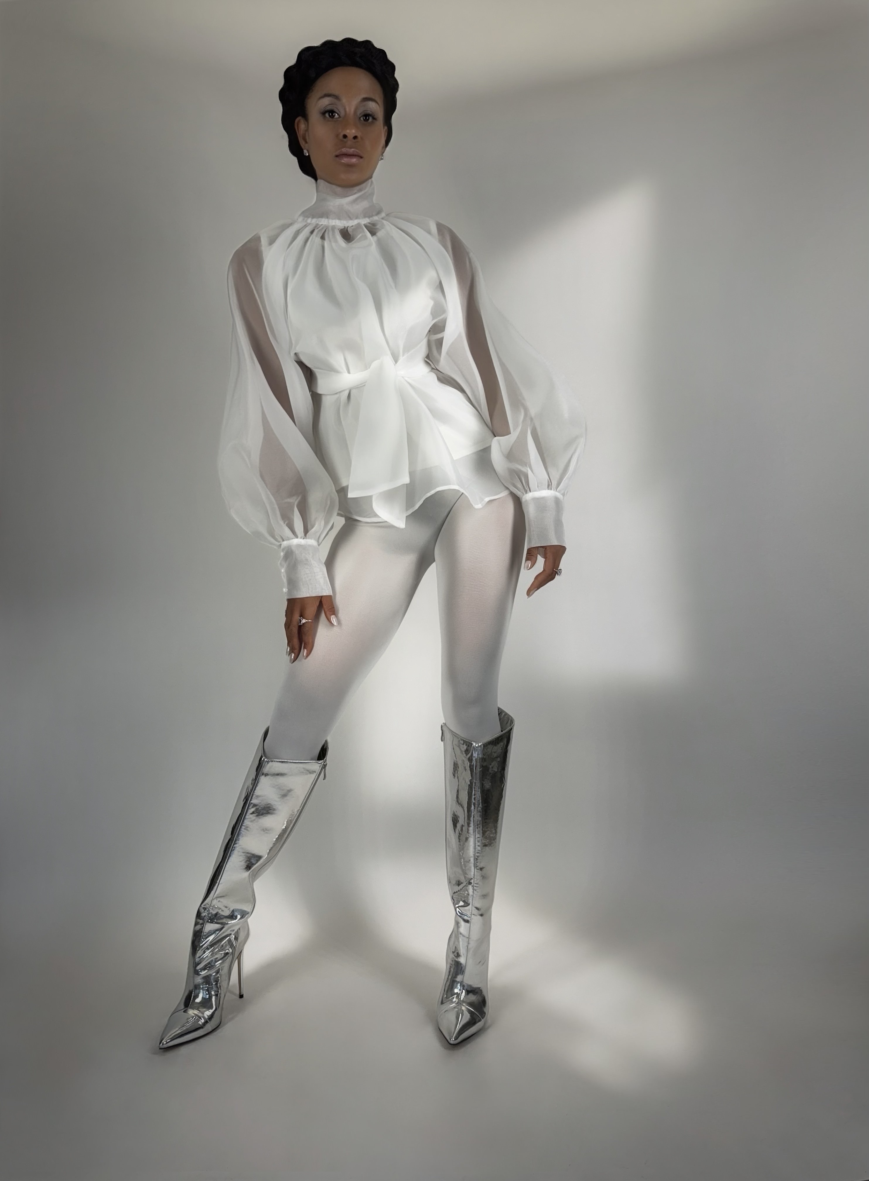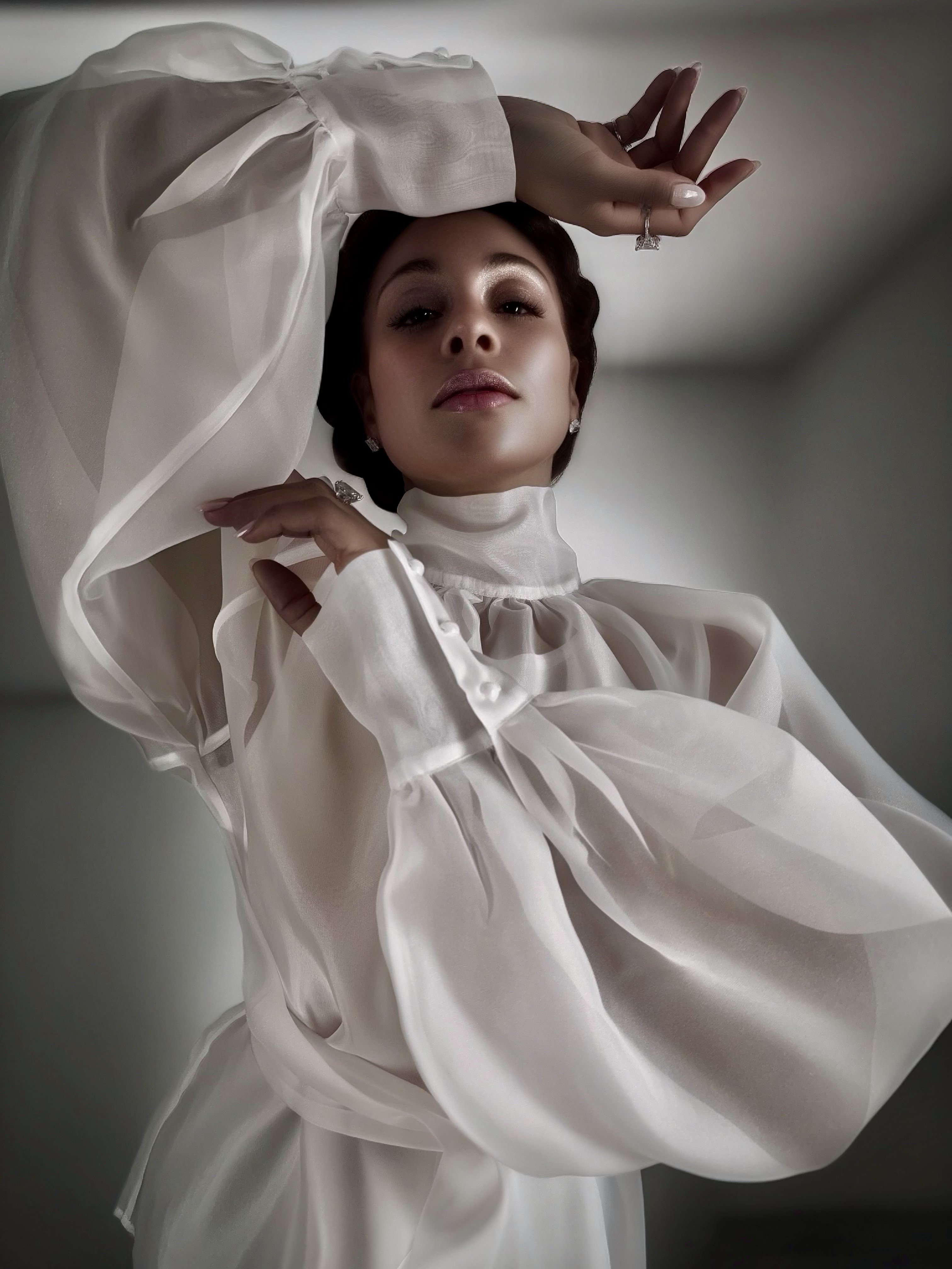 The colour, white, becomes a language unto itself — speaking in whispers of draped silk, in bold declarations of negative space, in the theatrical sweep of translucent organza catching light like captured breath.